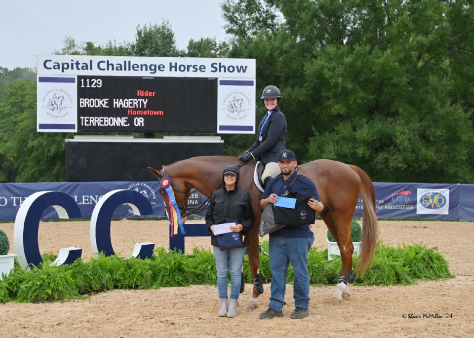Brooke Hagerty of Terrebonne, OR, topped the eighth-annual EMO Insurance Agency/United States Hunter Jumper Association (USHJA) 3’3” Jumping Seat Medal Final – East on Friday evening during the Capital Challenge Horse Show (CCHS) Equitation Showcase, presented by BIGEQ.com. Highlighting the second day of competition at Prince George’s Equestrian Center in Upper Marlboro, MD, Hagerty came into the day sitting second and rode off with the win.