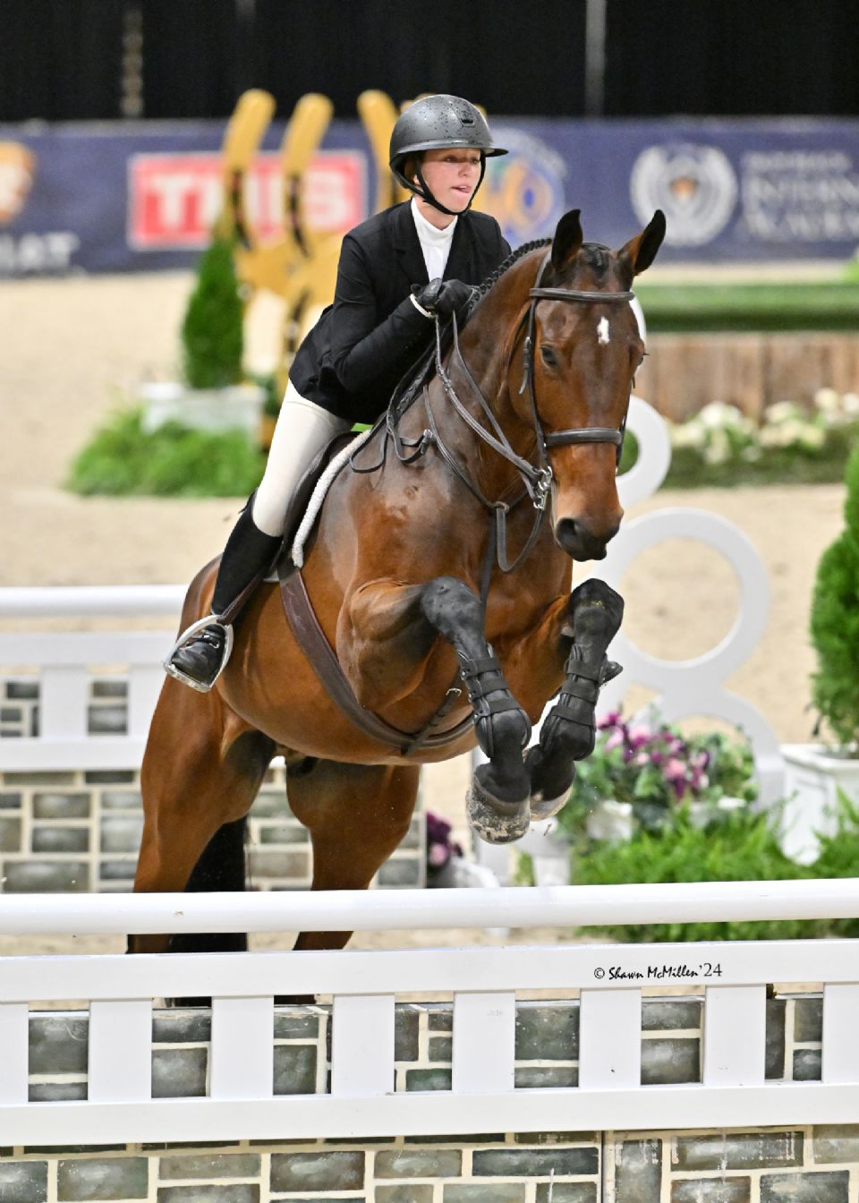 After a flat and gymnastic phase on Thursday, 174 riders took to The Show Place Arena for a final jumper phase to determine the ultimate placings. Leading the way after two phases, Grace O’Connell, 18, of Long Grove, IL, came into the evening on top. After pocketing an 85.85, which was then multiplied by the jumping phase’s coefficient of 2, her final score of 391.2 landed her third overall aboard Capitolino DVE, owned by Dutch Valley Sporthorses.