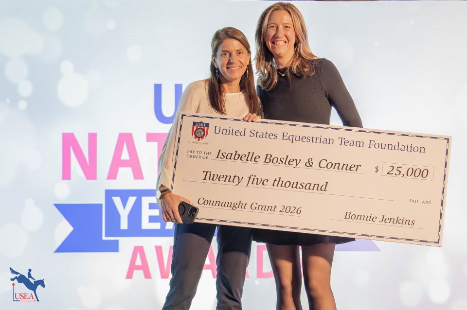 The United States Equestrian Team (USET) Foundation awarded Isabelle Bosley and Conner, Karen Martin’s eight-year-old Oldenburg gelding by Casiro 3 x Concetto, the 2026 Connaught Grant in Memory of R. Bruce Duchossois at the United States Eventing Association (USEA) year-end awards dinner in New Orleans, Louisiana, on December 14, 2025.