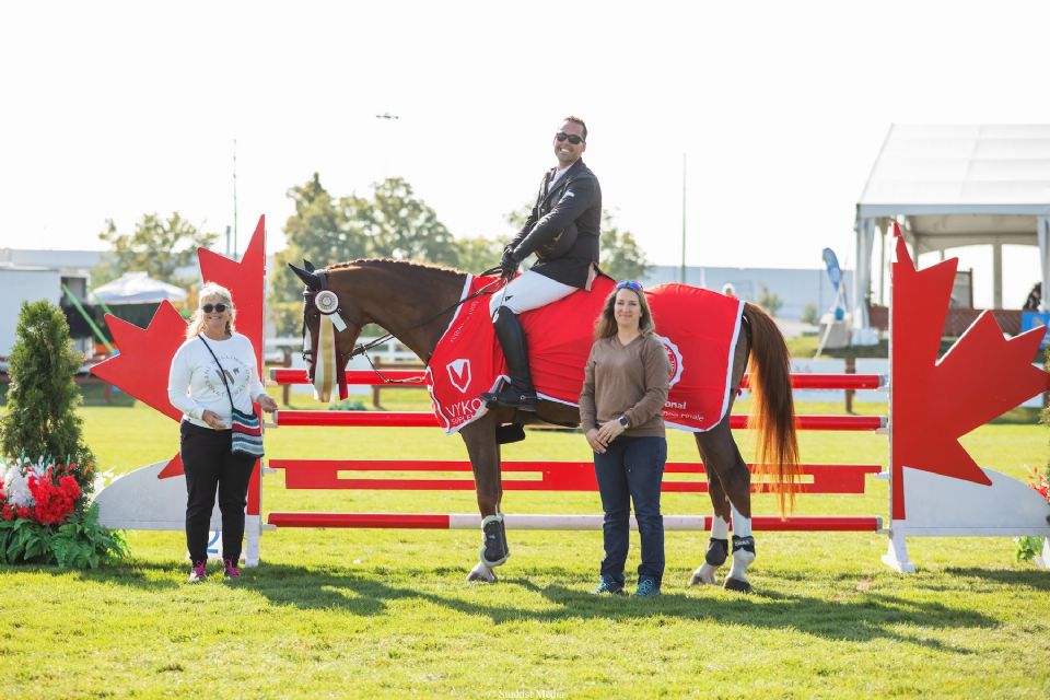 Runner-up Sophia Nihon Millar of Perth, ON, came closest with a clear round in a time of 42.59 seconds riding Marty McFly, a 12-year-old Zangersheide gelding she owns together with her husband, 10-time Canadian Olympian Ian Millar. Lauren Hunkin of Ashton, ON, was also double clear in a slower time of 45.48 seconds to take third place riding Kappucino Bloom.