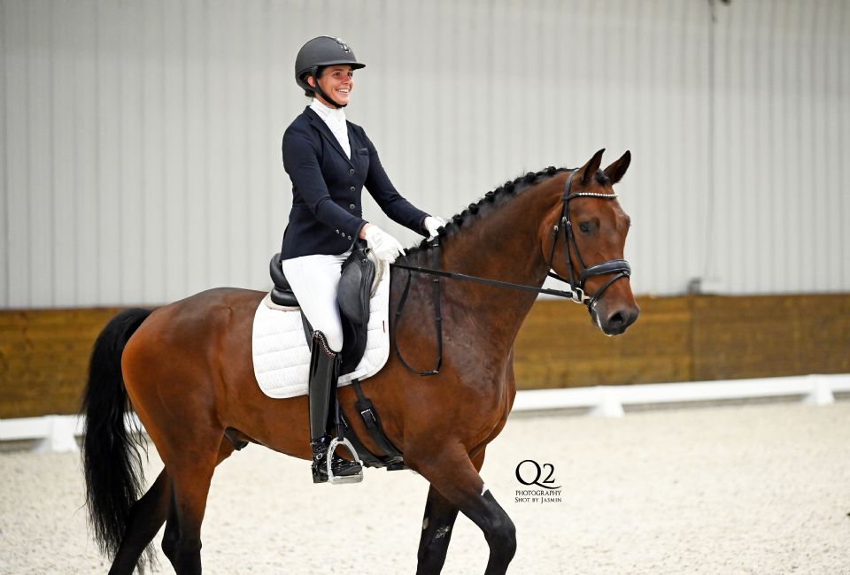 “I rode him for a little while, and then my assistant rode him while I was off on maternity leave,” explained Marek. “He’s a very sensitive horse, but once I had Mae and we really got going, we just clicked very well. We’ve really sailed along together, moving up from the Intermediare II last year to the Grand Prix.”