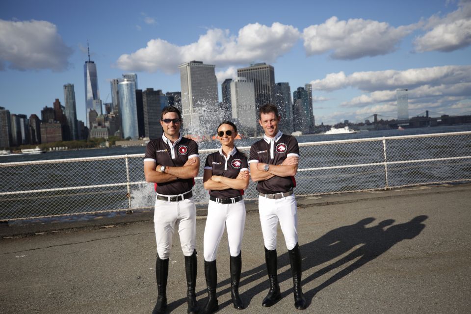The New York Empire team for the Longines Global Champions Tour and Global Champions League in New York is Daniel Bluman, Georgina Bloomberg, and Scott Brash.