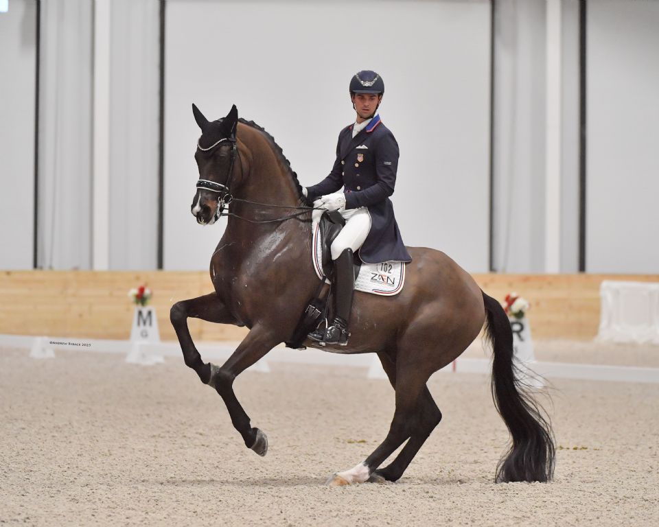 At just 23 years old, he has ascended through the levels of dressage quickly, having had success in the Under 25 division and at Small Tour, where he helped the U.S. team win the gold medal at the 2023 Pan American Games in Lima, Peru.